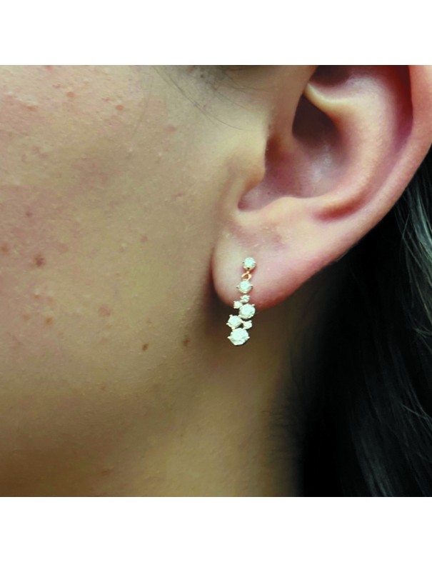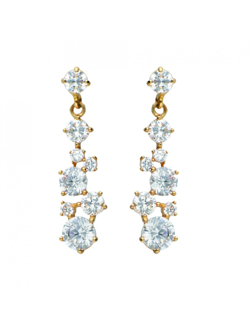 Pendientes Oro Amarillo 18Kts. Circonitas 710-PT60572, largos, cierre de presión. Garantía de tres años contra defecto de fabricación.