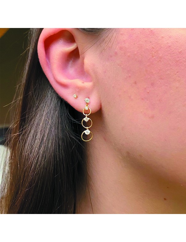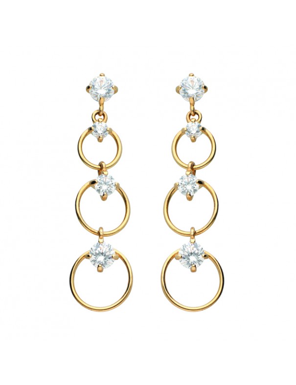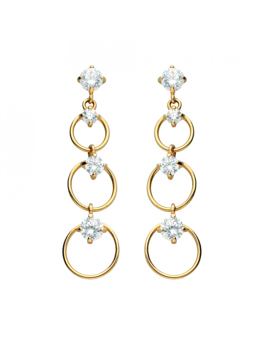 Pendientes Oro Amarillo 18Kts Circonitas 710-PT61082 largos, círculos, circonitas engastadas, cierre de presión.