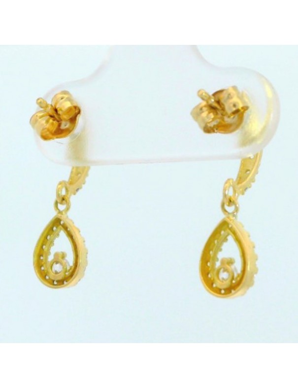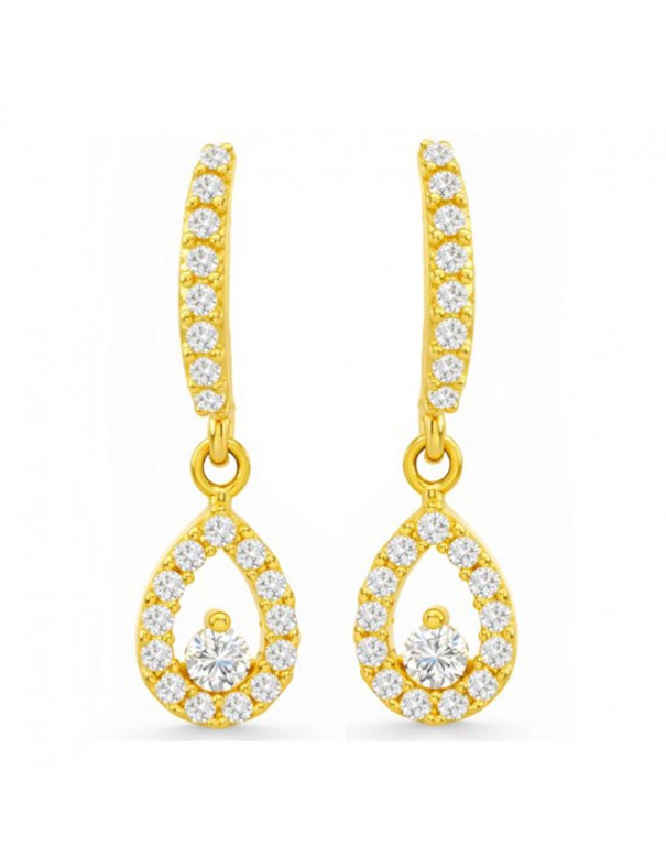 Pendientes Oro Largos Pera con Circonitas 18mm 00196. Pendientes de oro 18k largos en forma de pera adornados con circonitas. Tienen una medida de 18mm y cierre de presión.