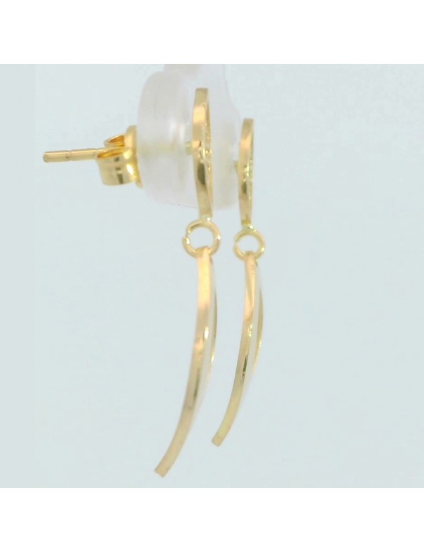 Pendientes Oro Largos con Circonitas 25x6mm 00141. Pendientes de oro 18k con un diseño largo en forma de hoja adornado con circonitas blancas. Tiene una medida de 25x6mm con cierre de presión.
