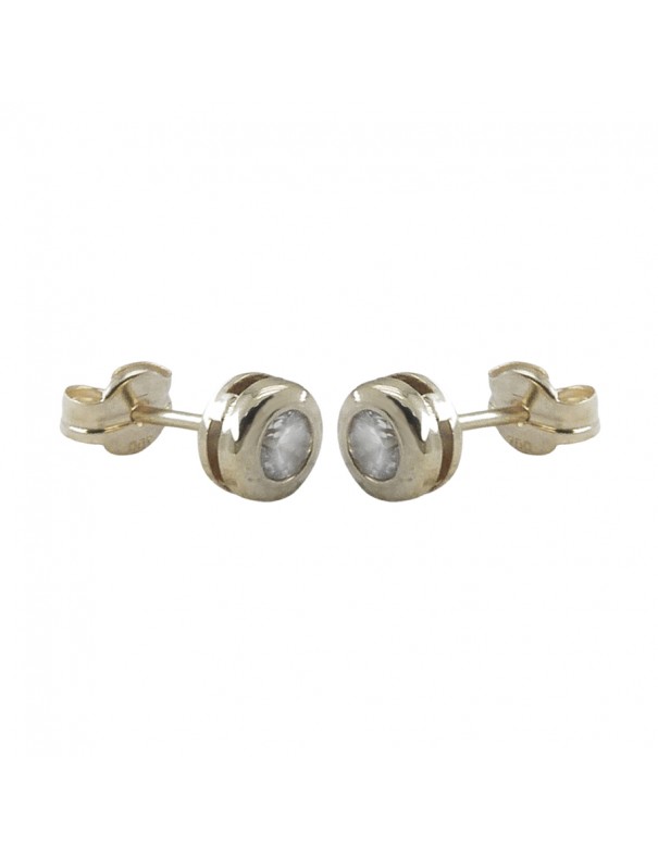 Pendientes Chatón Oro Blanco Piedra 5mm 1672/5B. Pendientes oro blanco 18k diseño chatón con medida de 5mm y cierre de presión.