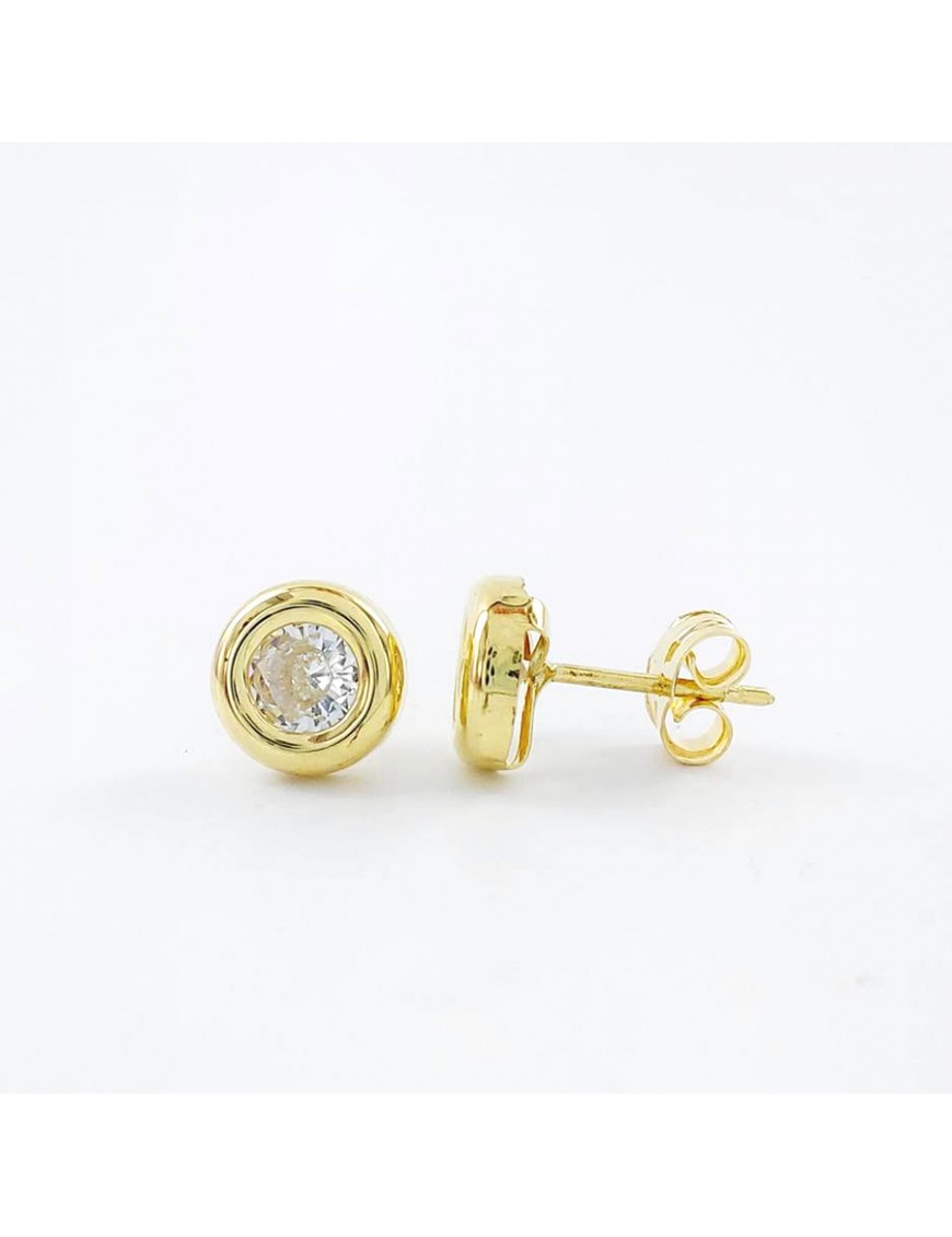 Pendientes Chatón Oro Circonita 4mm 0494604P. Pendientes chatón de oro amarillo de 18k con circonita de 4mm y cierre de presión 0494604P.