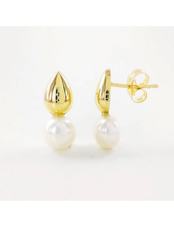 Pendientes Oro Gota y Perla 05513228P. Pendientes de oro amarillo de 18k en forma de gota y una perla. Tienen cierre de presión.