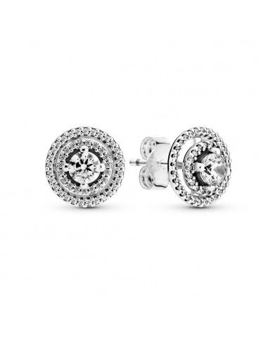 Pendientes Pandora Doble Halo Brillante 299411C01, en plata de primera ley 925mls y decorados con circonitas blancas. Cierre de presión. Círculo desmontable.