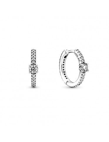 Pendientes Pandora Aro Brillante 299406C01, en plata de primera ley 925mls y circonitas cúbicas transparentes.