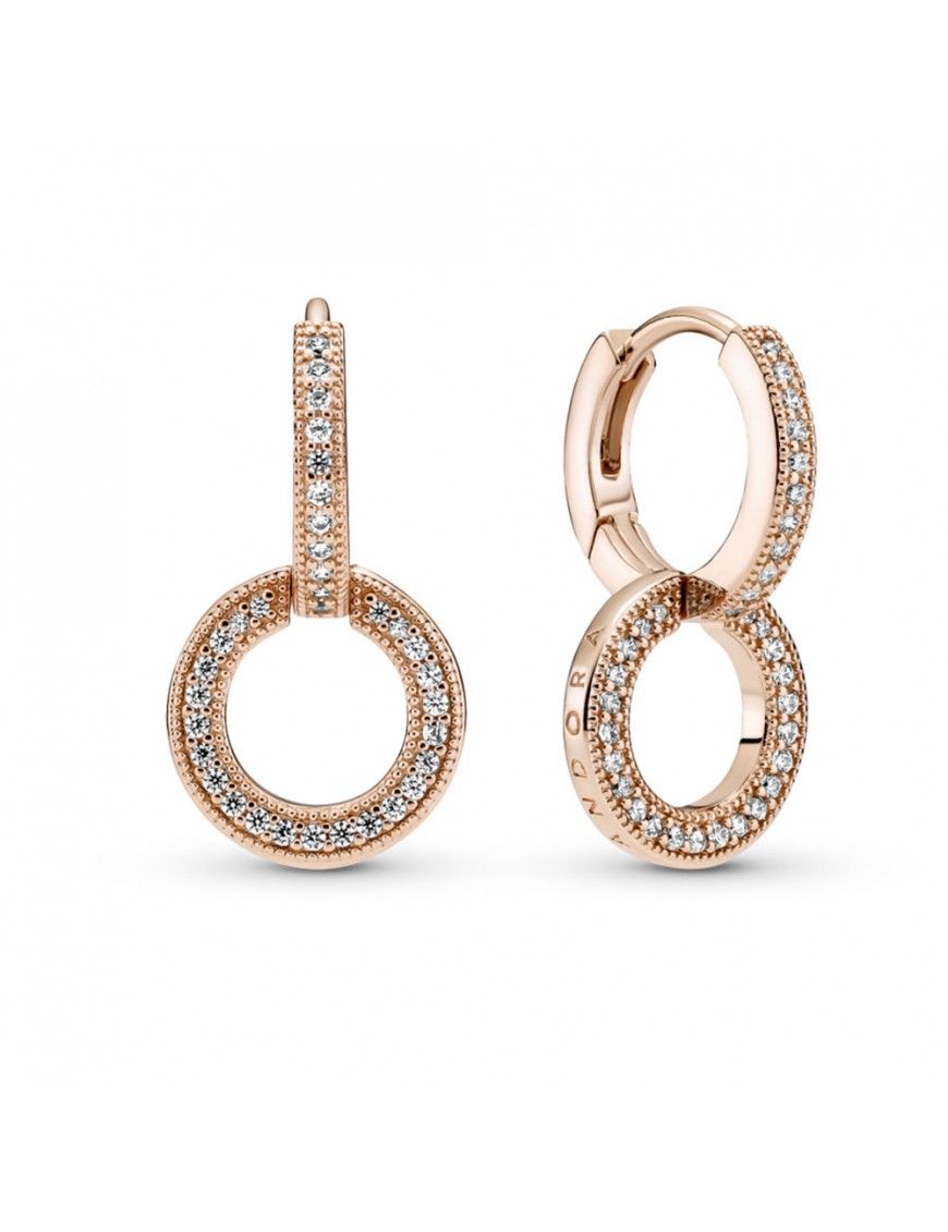 Pendientes Pandora Rose 289052C01, Pandora Rose, aleación de metales con recubrimiento de oro de 14kts, decorados con circonitas. Cierre de bisagra.