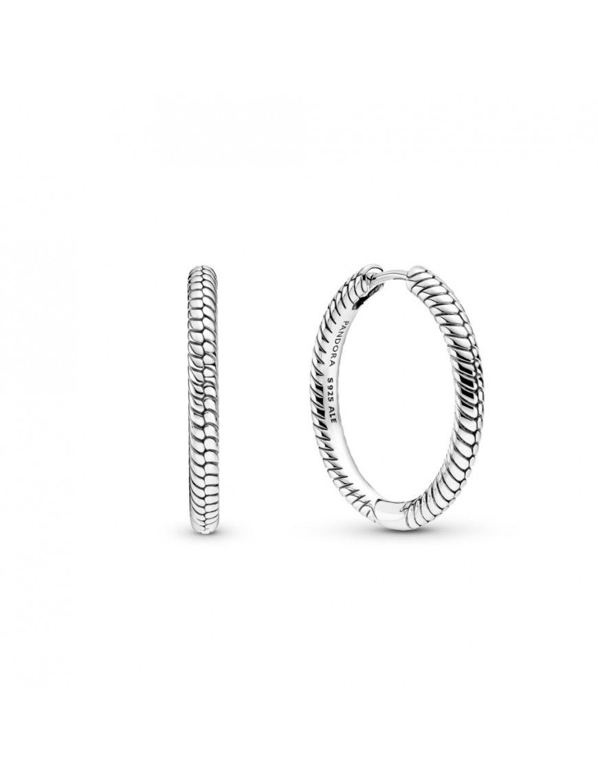 Pendientes Pandora Moments Aro 299532C00, en plata de primera ley 925mls adornados con diseño cadena de serpiente.