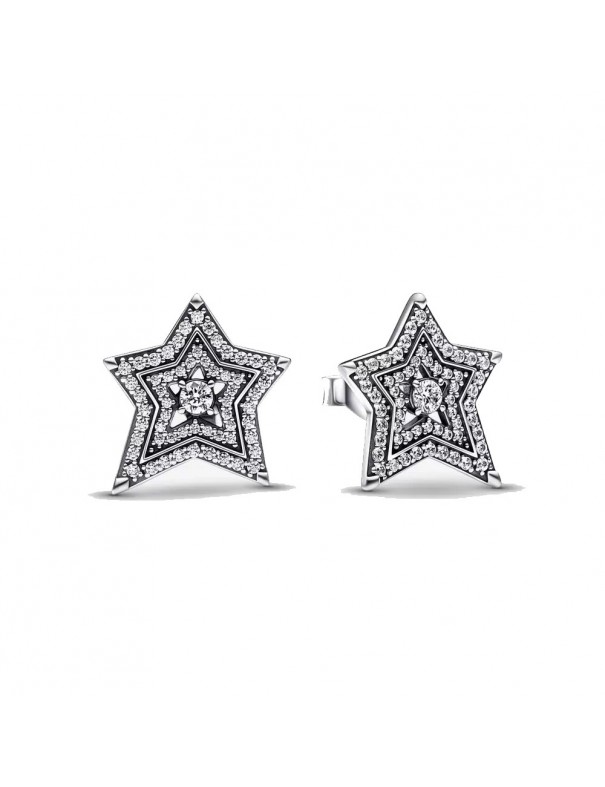 Pendientes Pandora de botón Estrella Asimétrica 292415C01, en plata de primera ley 925mls, decorados con circonitas blancas. Cierre de presión.