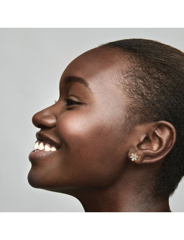 Pendientes Pandora Botón Herbario Brillante 262633C01. Son de una aleación especial de metales cubierta de oro de 14 kts con circonitas transparentes. Llevan cierre de presión.