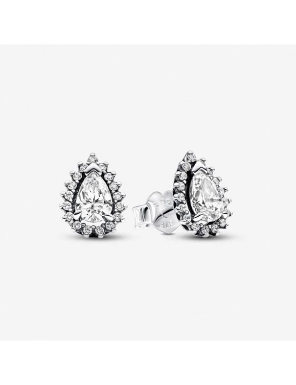 Pendientes Pandora Botón Halo Brillante Corte Pera 292834C01. Son de plata de primera ley de 925 mls con circonitas. Llevan cierre de presión. Garantía de tres años.