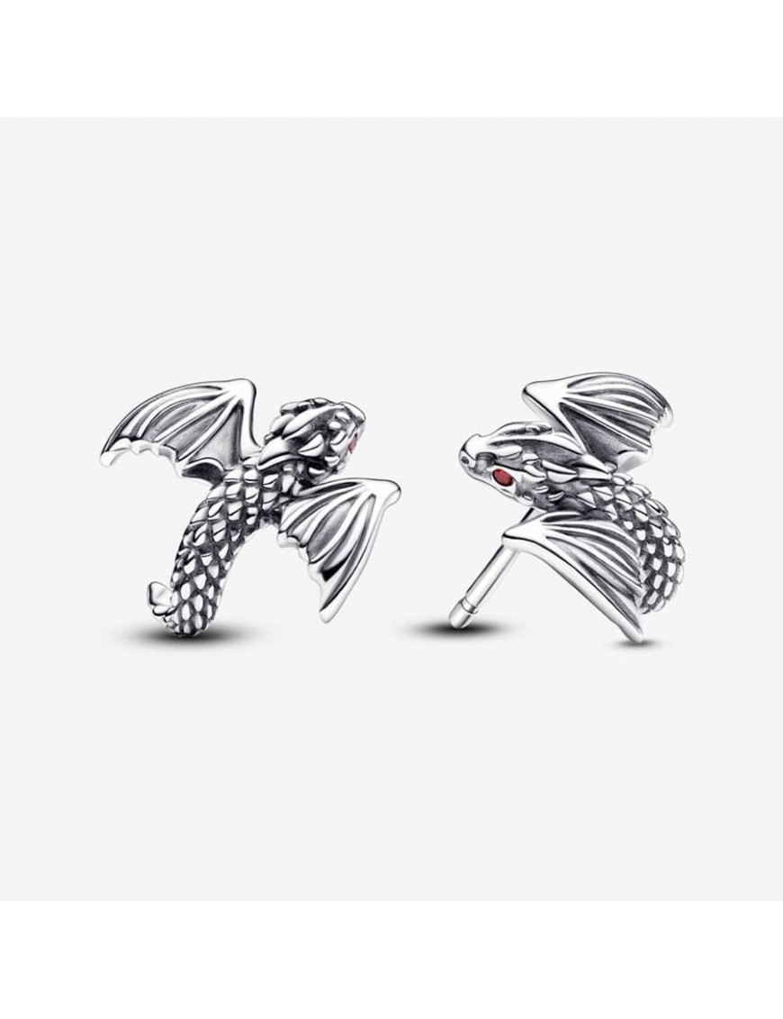 Pendientes Pandora Botón Dragón Curvado Juego de Tronos 292970C01. Son de plata de primera ley de 925 mls con cristales rojos sintéticos. Llevan cierre de presión. Garantía de tres años.