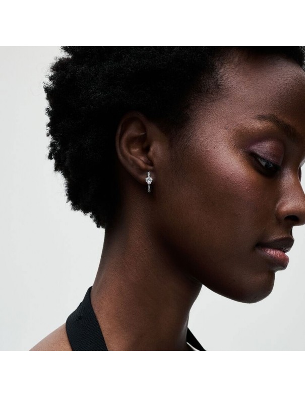 Pendientes Pandora de aro Corazón Brillante 293101C01. Son de plata de primera ley de 925 mls con circonitas. Miden 15 mm de alto. Tienen tres años de garantía.