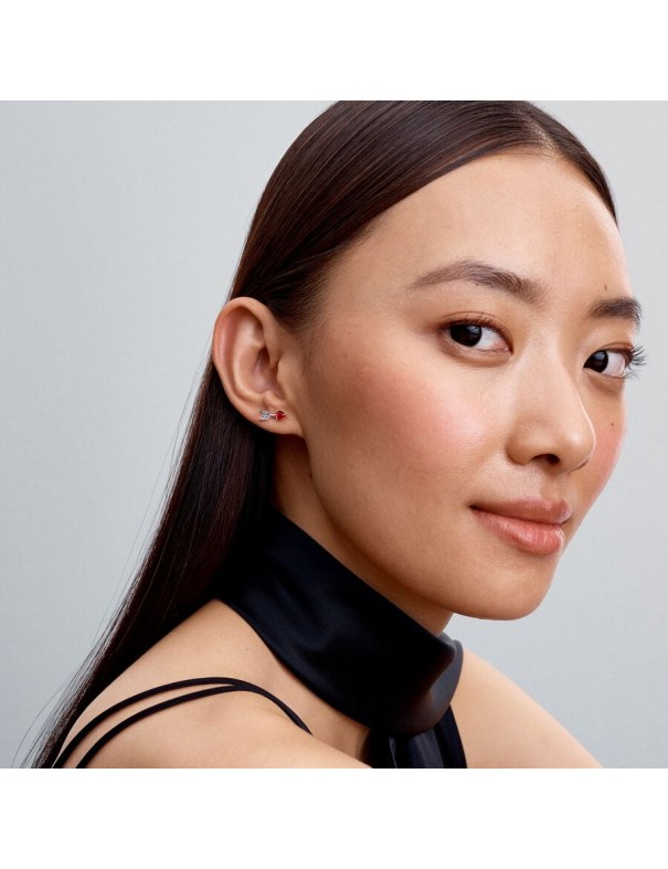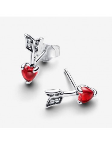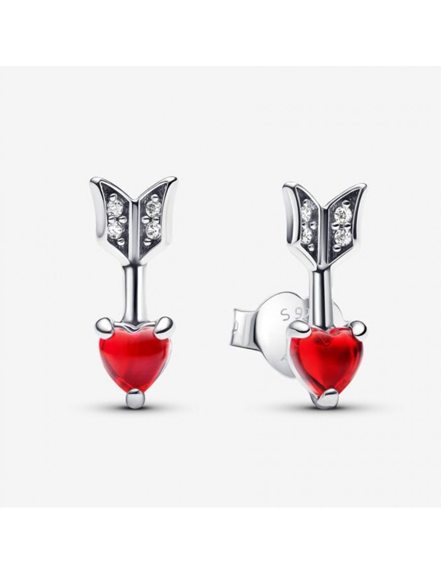 Pendientes Flecha y Corazón Cristal de Murano 293668C01. Pendientes de botón creados en plata de primera ley con cuatro circonitas en cada uno y un cristal de murano en color rojo en la punta de cada flecha. Garantía de 3 años.