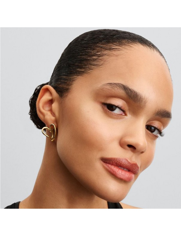 Pendientes de Aro Corazón Forma Orgánica 263807C00. Fabricados en aleación de metales con baño en oro de 14k. Tiene forma de corazones abstractos con un cómodo cierre de clic.