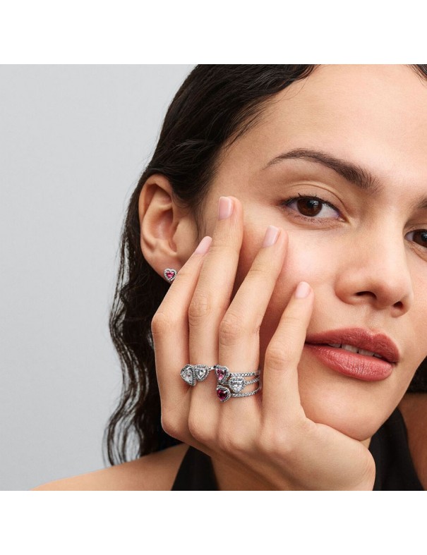 Pendientes Pandora Corazón Rosa 298427C02. Son de plata de primera ley de 925 mls con circonitas y llevan cierre de presión. Garantía de tres años.