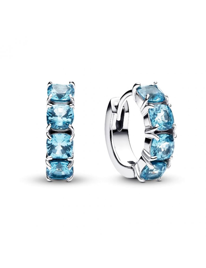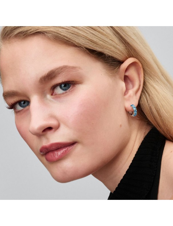 Pendientes de Aro Azul Claro Plata de Primera Ley 293851C01. Los pendientes están fabricados en plata de primera ley, con una fila de cristales artificiales tallados en forma de cojín en color azul aguamarina. Cada cristal es duradero y brillante, y el diseño está acabado a mano por artesanos.