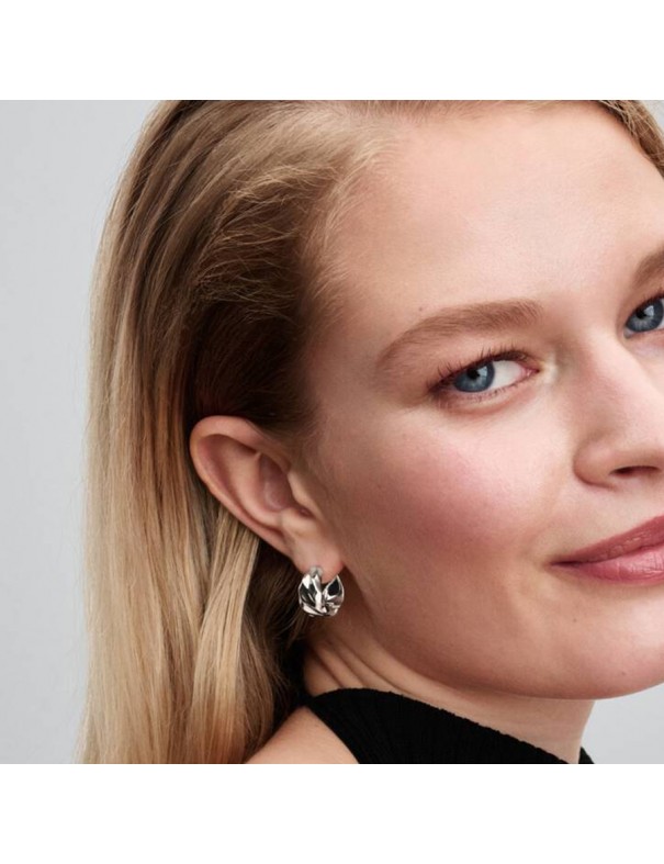 Pendientes Pandora de Aro Pequeños Ondulados 293874C00. Pendientes de aro pequeños en plata de primera ley, con un diseño ondulado que aporta un toque moderno y elegante. Su acabado brillante realza la simplicidad del estilo, permitiendo que se adapten fácilmente a cualquier ocasión.