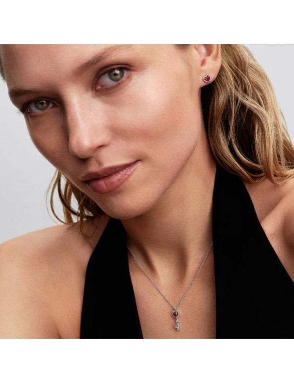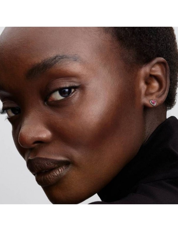 Pendientes Pandora de Botón Corazón Elevado Rojo 298427C04. Pendientes tipo botón con diseño de corazón elevado en plata de ley con cristales rojos en el centro y rodeados por circonitas transparentes, estilo romántico y elegante. Tienen cierre de presión seguro, forma de corazón con volumen y aportan un toque de color y brillo.