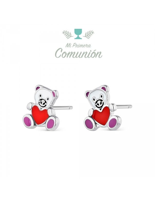 Pendientes De Plata Niña Ositos Esmalte 9113189, en plata de primera ley 925mls, decorados con esmalte de color. Cierre de presión. Tamaño de 9mm.
