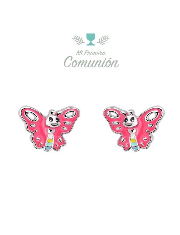 Pendientes De Plata Niña Mariposas Esmalte 9113496, en plata de primera ley 925mls, decorados con esmalte de color. Cierre de presión. Tamaño de 6mm.
