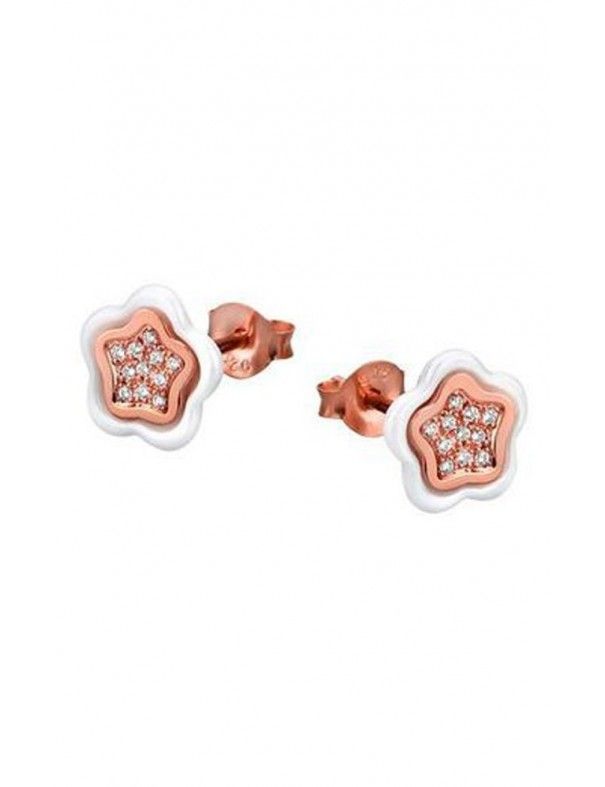 Pendientes Lotus Silver plata mujer LP1277-4/9. Se trata de unos pendientes diseñados por Lotus Silver, para mujer, realizados en plata de ley, 925mls, bañada en color oro rosé y decorada con cristales. Además, la parte externa está fabricada con cerámica blanca. Cada pendiente mide 9mm y tiene un cierre de presión.