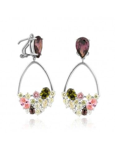 Pendientes plata colgantes color V00199. Están realizados en plata de 925 mls y piedras de color.