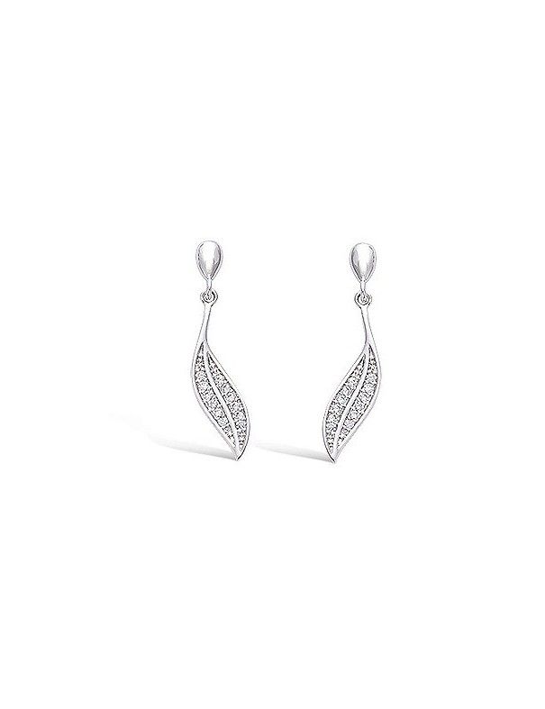 Pendientes plata circonitas hoja 21ET052CZ. Están realizados en plata de primera ley de 925 mls con baño de rodio con circonitas. Incorporan cierre de presión.