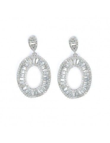 Pendientes plata óvalo irregular 9104539 con cierre de presión para mujer. Están realizados en plata de primera ley de 925 mls con baño de rodio y brillantes circonitas. Miden 32 mm de largo. Garantía de 2 años contra defectos de fabricación.