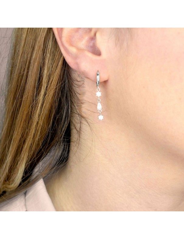 Pendientes Plata Mujer 152143, en plata de Ley 925mls rodiada. Aro de 11mm de diámetro y circonitas blancas.