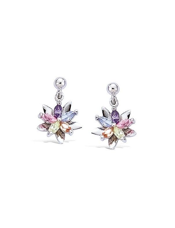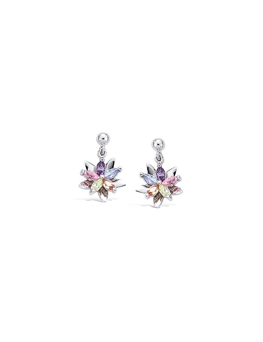 Pendientes De Plata Flor De Colores 21EI056X, fabricado en plata de primera ley 925mls y circonitas de colores. 15X10mm. Garantía de dos años contra defectos de fabricación.