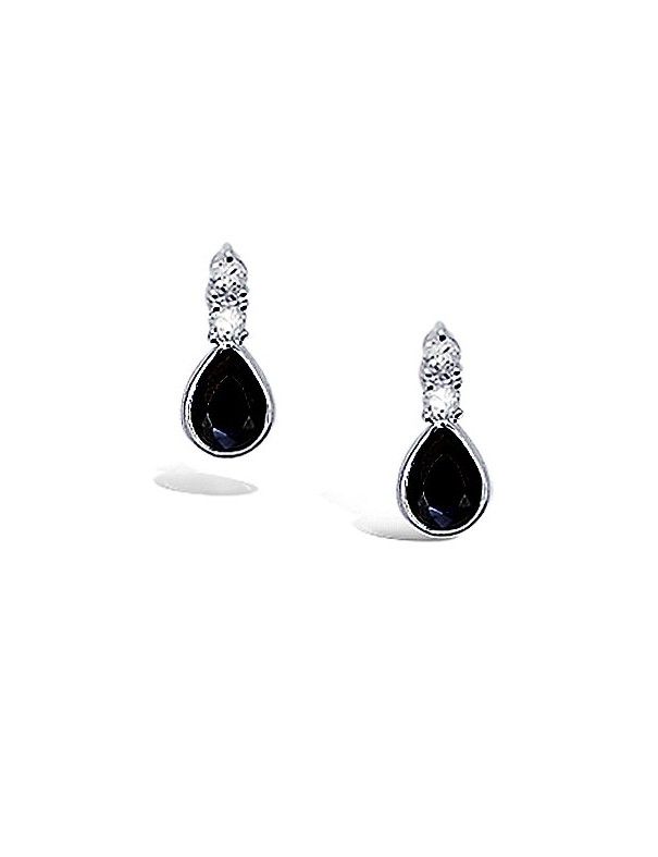Pendientes De Plata Gota Negra 21EN030ZN, fabricados en plata de primera ley 925mls, circonita principal en color negro y superiores en color blanco. Cierre de presión y tamaño de 6X14mm. Garantía de dos años contra defectos de fabricación.