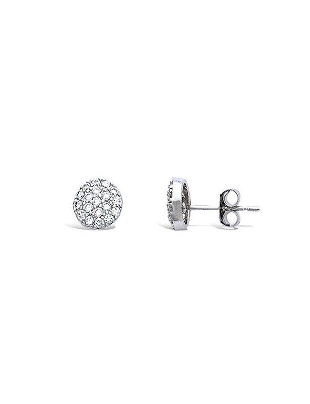 Pendientes De Plata Redondo 21EN109CZ, fabricados en plata de primera ley 925mls y circonitas. Cierre de presión y diámetro de 8mm. Garantía de dos años contra defectos de fabricación.