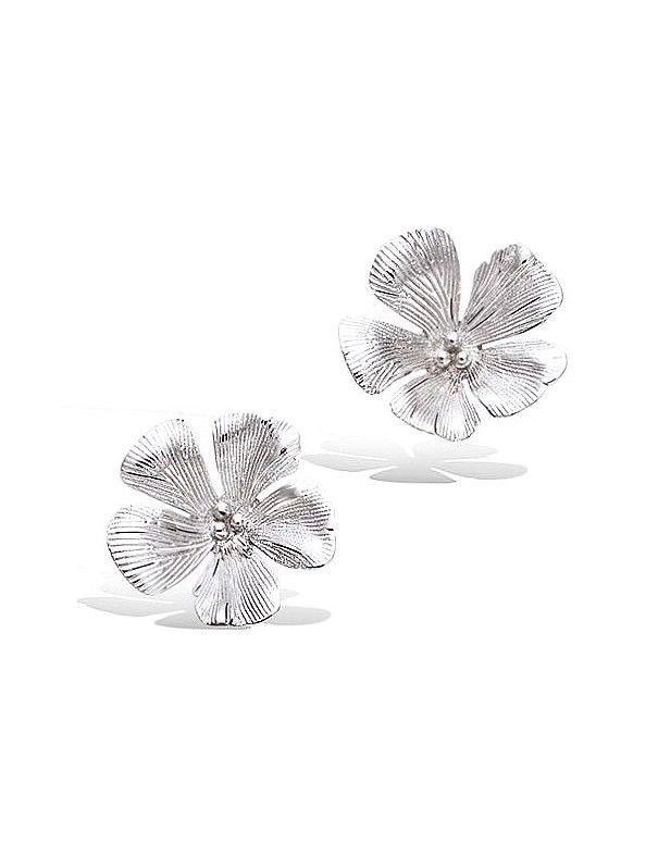 Pendientes De Plata Flor 21HX0310, fabricados en plata de primera ley 925mls. Cierre de presión y diámetro de 20mm.