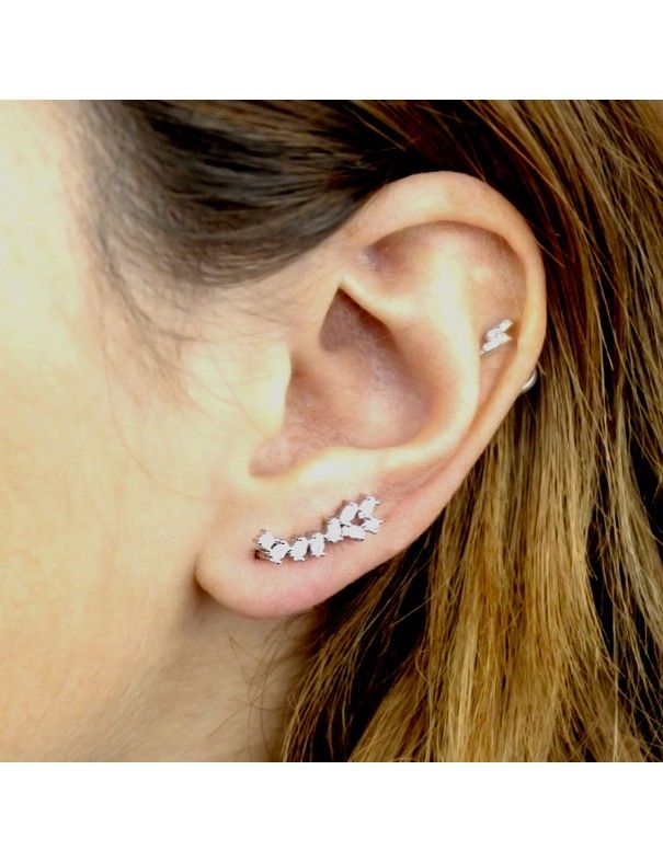 Pendientes De Plata Trepadores Circonitas 151825, fabricados en plata de primera ley 925mls y circonitas. Cierre de anzuelo y 18mm de largos.