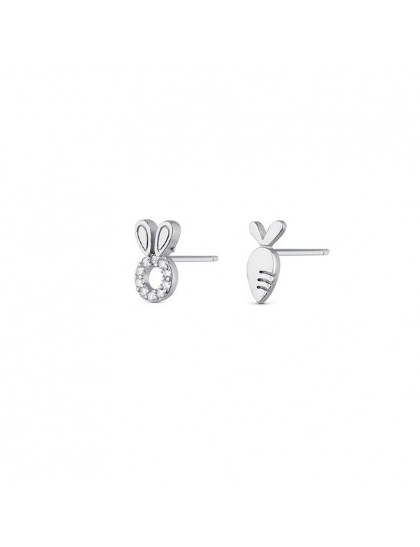 Pendientes De Plata Conejo Zanahoria 9110653, en plata de ley 925mls con baño de rodio. Figura conejo 0,90X0,6cm y figura zanahoria 0,90X0,4cm. Cierre de presión.
