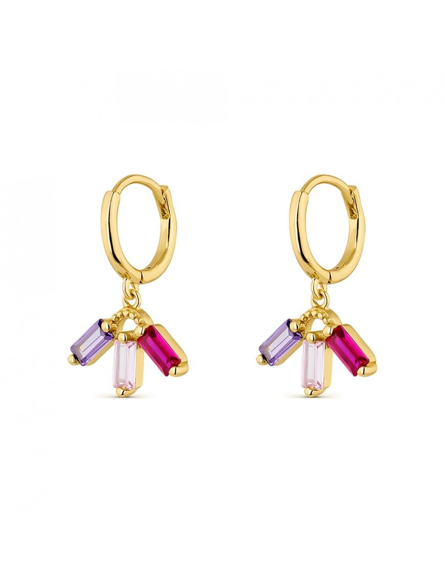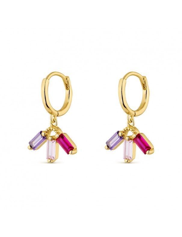 Pendientes De Plata Bañados En Oro Aro Colgantes Baguette 9110698, en plata de ley 925mls bañados en oro de 18kts de 5 micras. Aro de 12mm de diámetro.