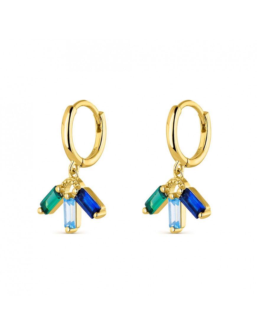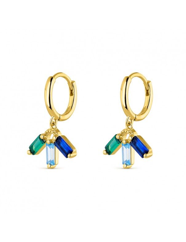 Pendientes De Plata Bañados En Oro Colgantes Baguette 9110700, en plata de ley 925mls bañados en oro de 18kts de 5 micras. Aro de 12mm de diámetro.