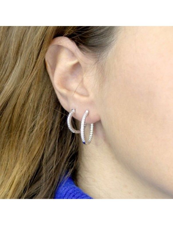 Pendientes De Plata Aro Circonitas 16mm 152199, fabricados en plata de primera ley 925mls y baño de rodio. Circonitas blancas. Diámetro de 16mm. Cierre automático.