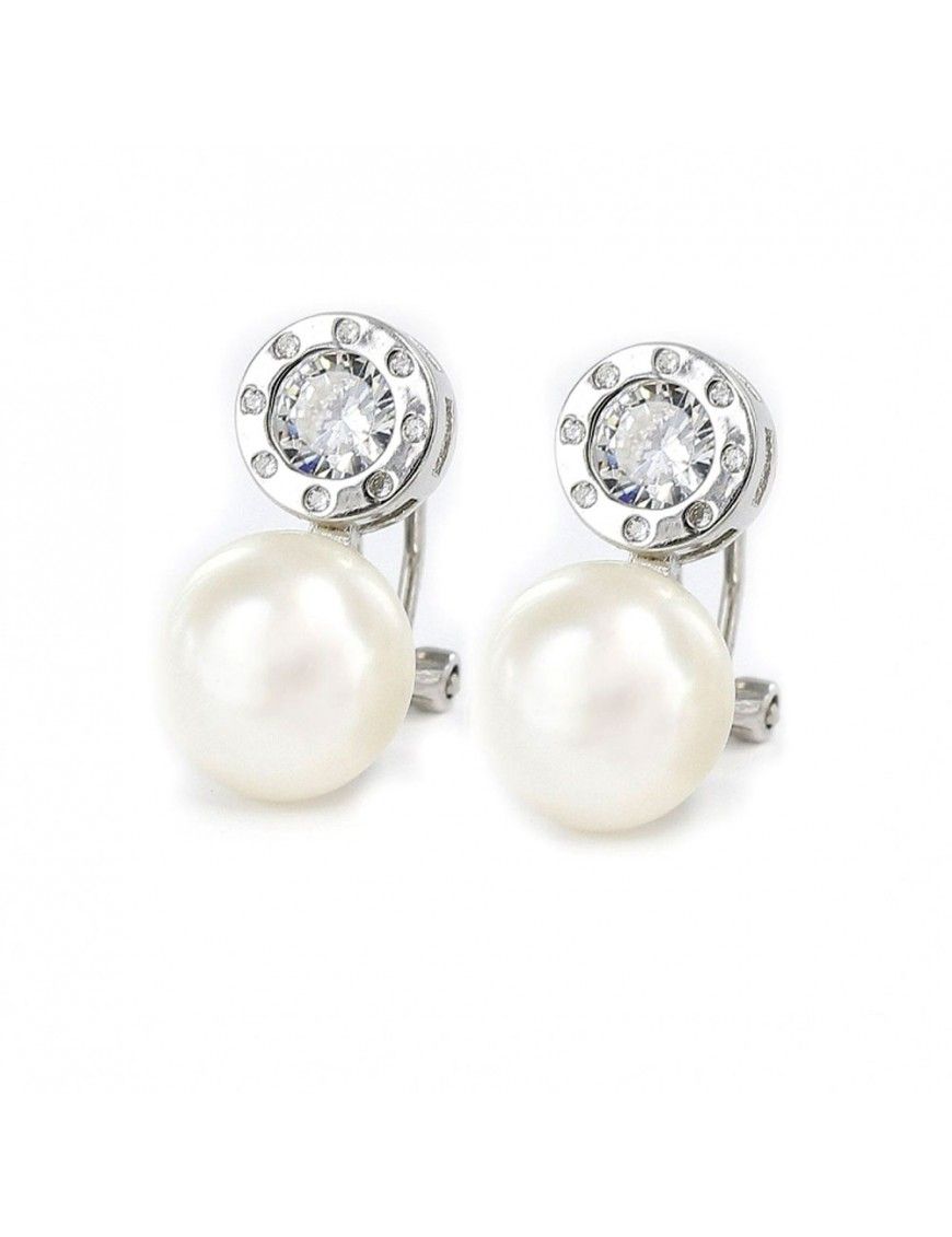 Pendientes De Plata Perla Tu Y Yo 9103615, en plata de primera ley 925mls, perlas cultivadas de 10mm y circonitas. Cierre tipo omega.