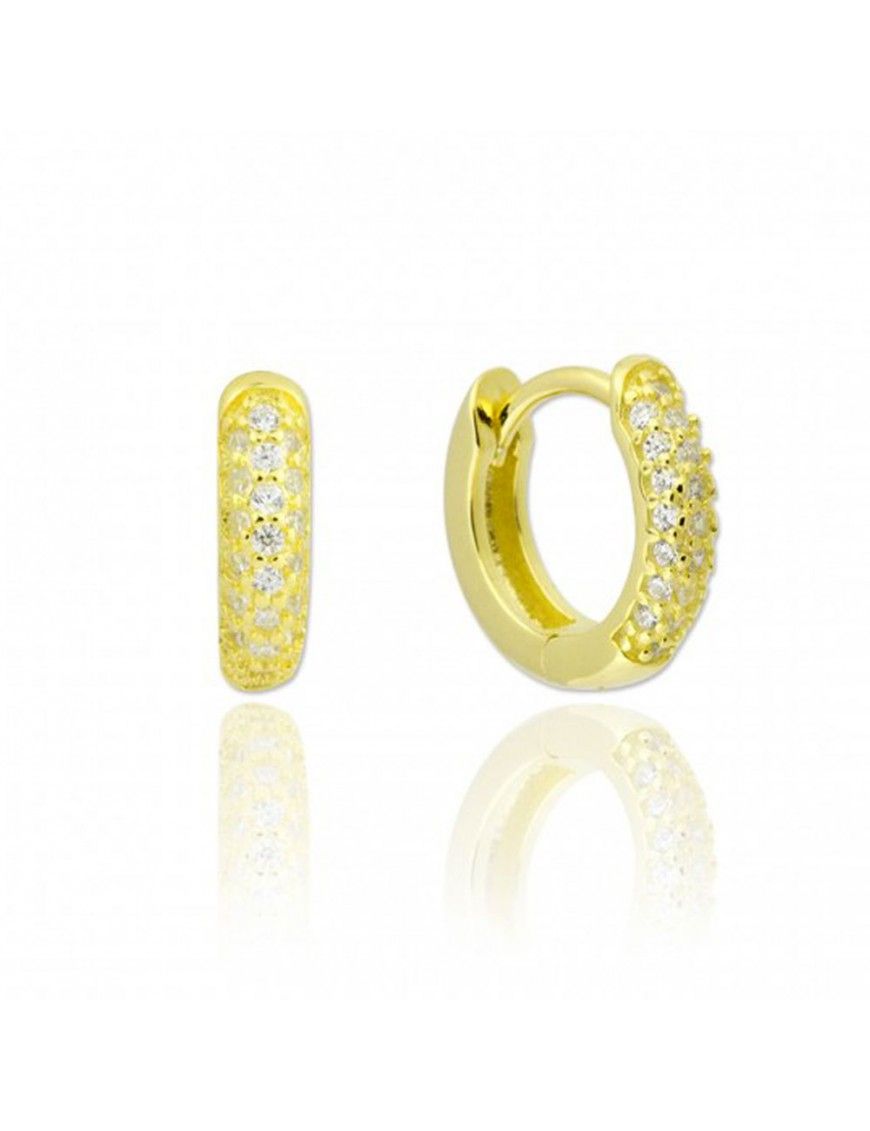 Pendientes De Plata Dorada Aro Circonitas 152421, en plata de primera ley 925mls bañados en color dorado. Diámetro de 12mm. Cierre de bisagra.