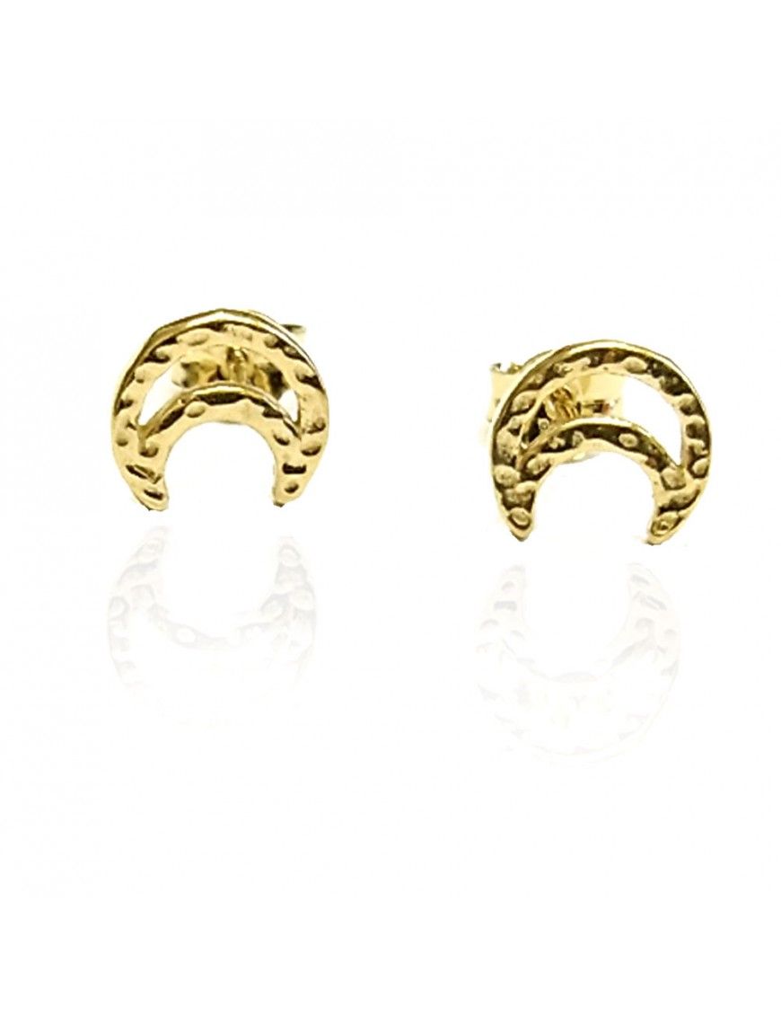 Pendientes De Plata Chapada Luna 018310-2-1, en plata de primera ley 925mls y baño en oro de 18kts de 5 micras. Dimensiones de 10X10mm. Cierre de presión.
