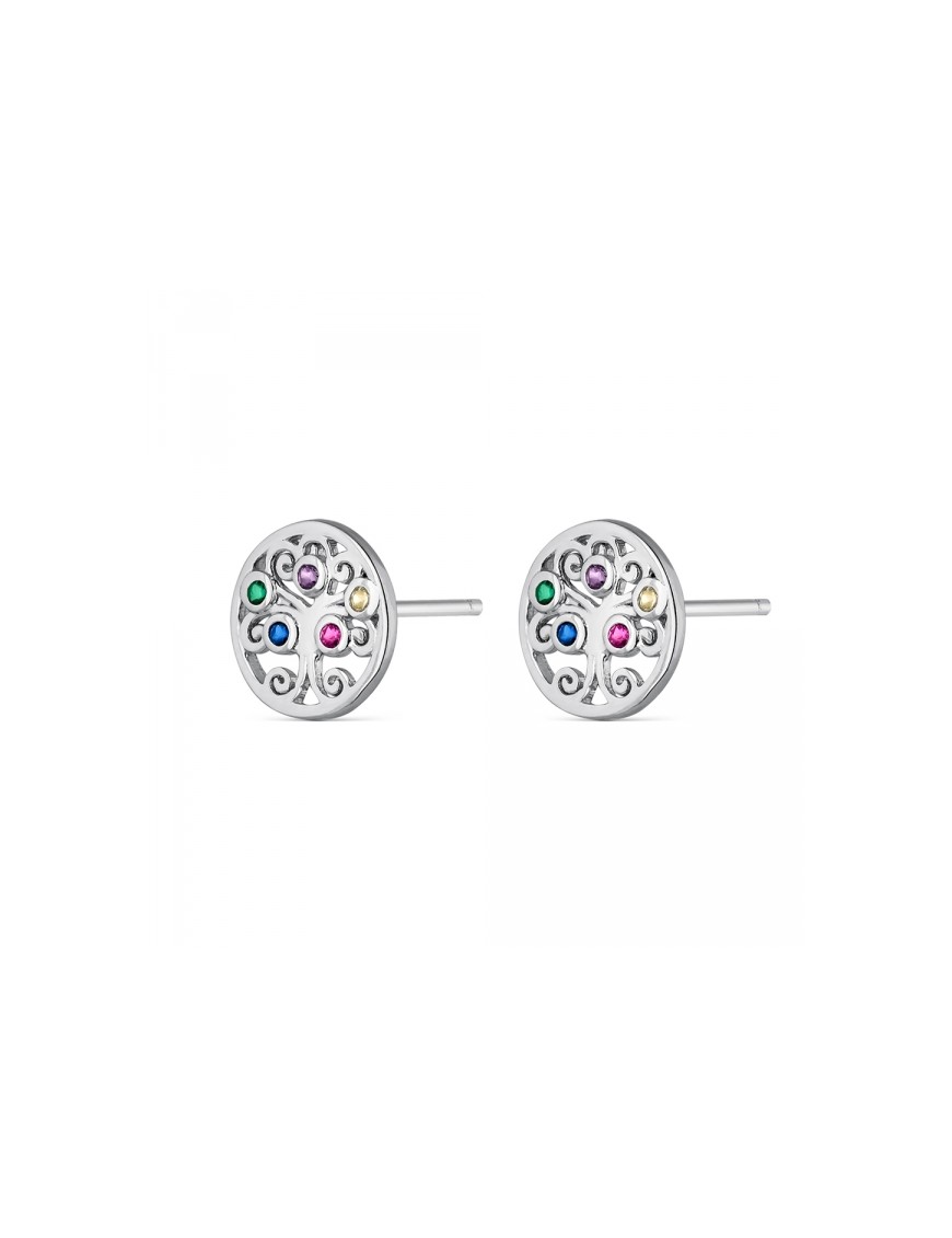 Pendientes De Plata Árbol de La Vida Multicolor 9110889, en plata de primera ley 925mls decorados con circonitas multicolor. Diámetro de 10mm. Cierre de presión.