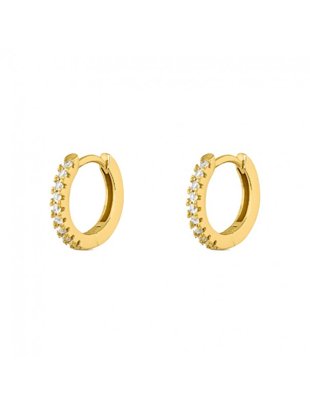 Pendientes de plata dorada circonitas 9111499 para mujer. Son de plata dorada de primera ley de 925 mls y circonitas. Miden 12 mm de alto y cierran a presión Garantía de tres años.
