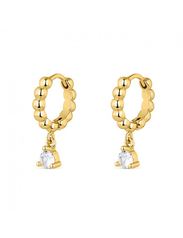 Pendientes de plata dorada bolitas 9112039 para mujer. Son de plata dorada de primera ley de 925 mls con circonitas y cierre a presión estilo criolla. Garantía de tres años.
