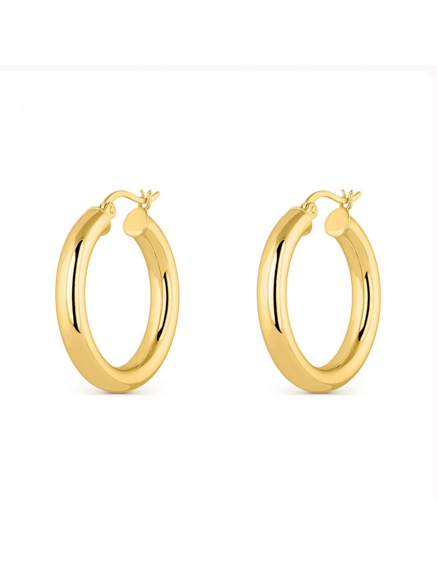 Pendientes de plata dorada aros 9112249 para mujer. Son de plata dorada de primera ley de 925 mls con cierre pasador. Miden 3 cm de alto.