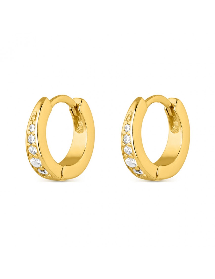 Pendientes de plata dorada 9112614 para mujer. Son de plata dorada de primera ley de 925 mls con circonitas. Cierran a presión.