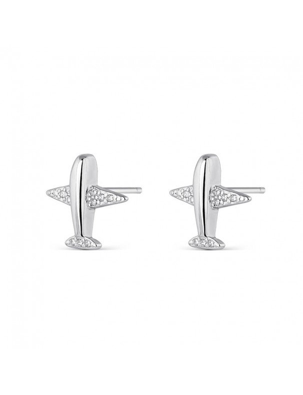 Pendientes de plata mini aviones 9112926 para mujer. Son de palta de primera ley de 925 mls con circonitas y cierre de presión.