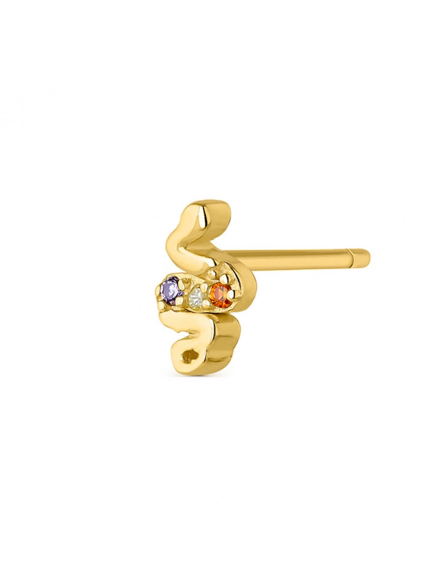 Un pendiente individual serpiente colores 9113223 para mujer. Es de plata dorada de primera ley de 925 mls con circonitas y cierre de presión.
