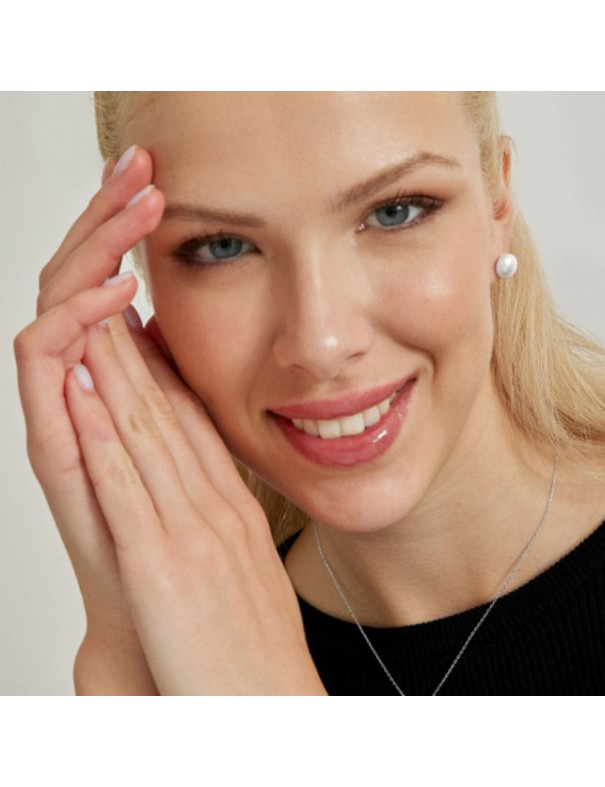 Pendientes Luxenter Perla EV06811400. Fabricados en plata de ley 925 con perla blanca y acabado en rodio, con cierre de presión y tamaño compacto (≈11 mm). Representan una joya básica y atemporal, perfectos para el uso diario o eventos discretos con un toque elegante.