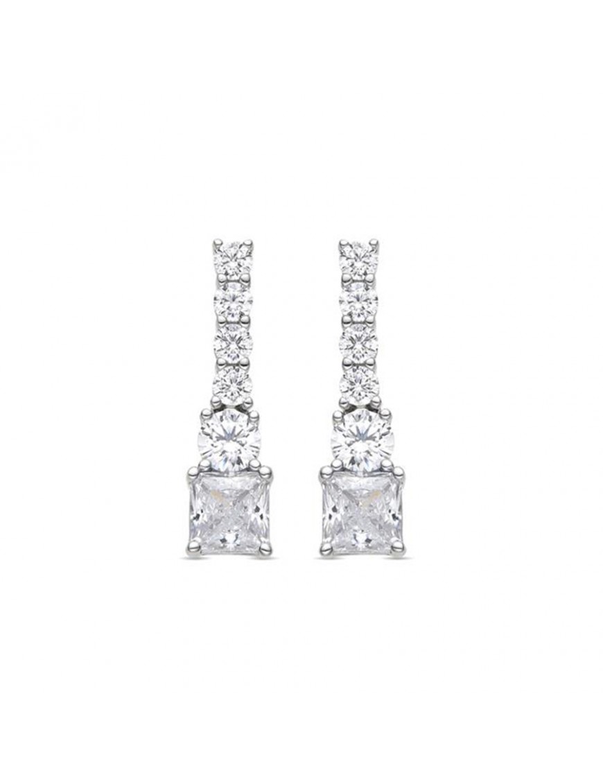Pendientes Luxenter Himith ET5450000. Creados en plata de ley con baño de rodio en diseño de barras rectas con circonitas blancas engastadas, color plateado y detalle brillante de piedras. Presentan un diseño alargado y lineales con cierre cómodo de presión.